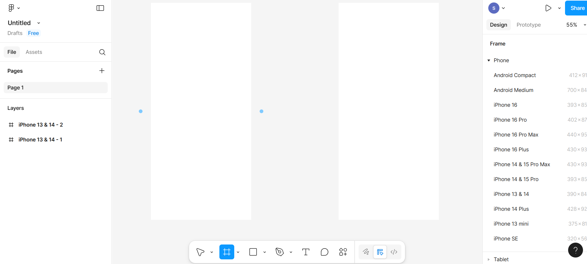Use the Frame Tool (F) and select Phone → iPhone 13 size.
