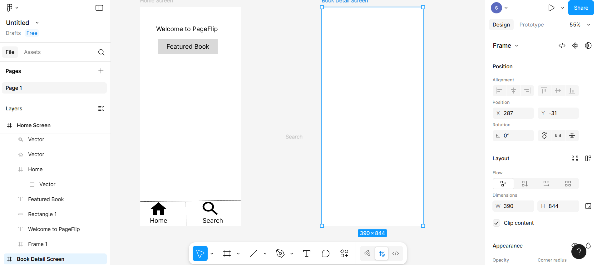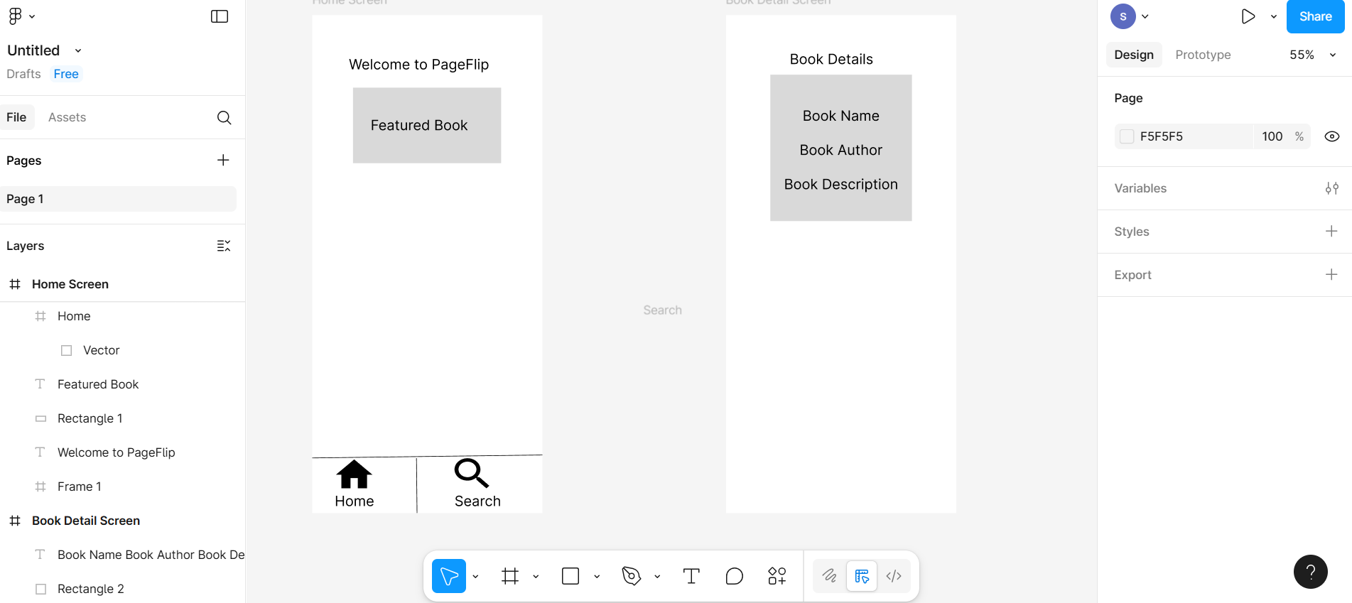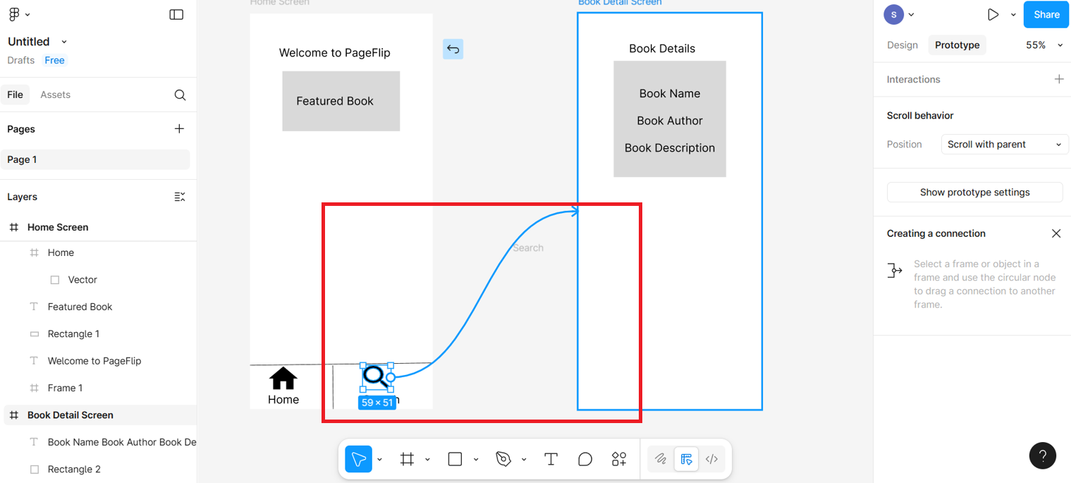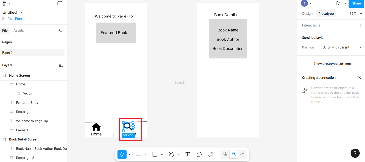 In this lab, you will learn to design a bottom navigation bar in Figma for a mobile app layout. You'll create two mobile screens representing different app sections, such as Home and Book Detail. Using Figma's Prototype feature, you'll connect these screens with navigation links. You'll also add a swipe gesture to allow users to slide between the screens smoothly. This interaction helps simulate a more realistic user experience for app testing and presentation.