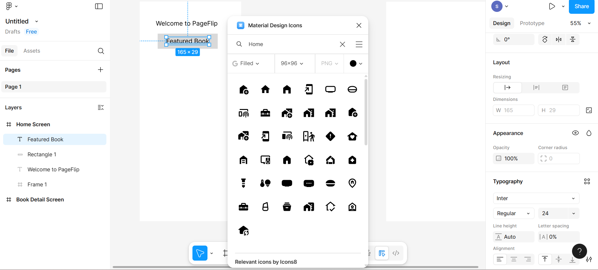 Below that, add a rectangle and then add text for a "featured book".