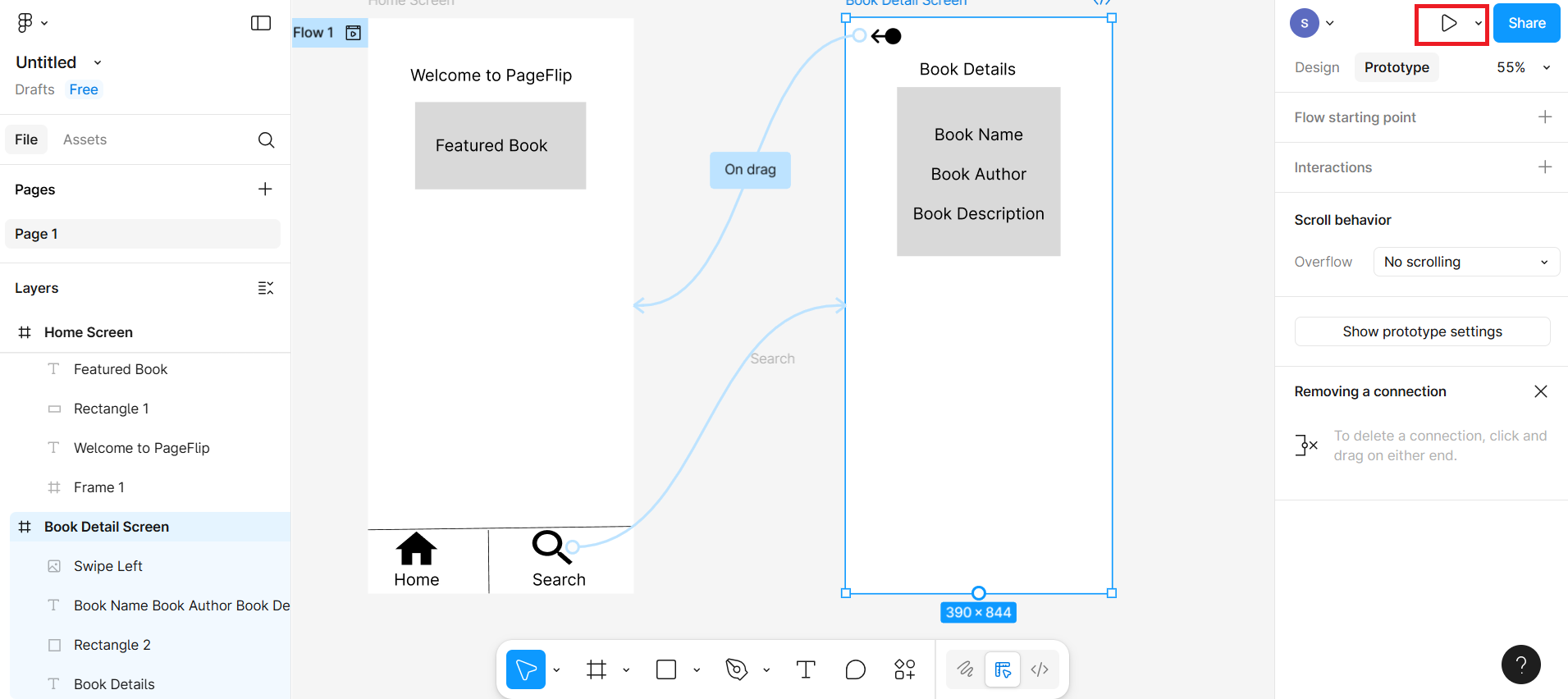 Go to the Prototype tab in the right panel