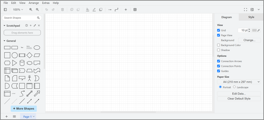 Draw.io (officially known as diagram.net) is a free, browser-based diagramming tool for creating a wide range of visual content, including flowcharts, wireframes, UML diagrams, network maps, and organizational charts. It's widely used by UX designers, developers, educators, and project managers for its ease of use and flexibility. You can start using Draw.io without signing up, and it supports saving files directly to your local device, Google Drive, OneDrive, or Dropbox.